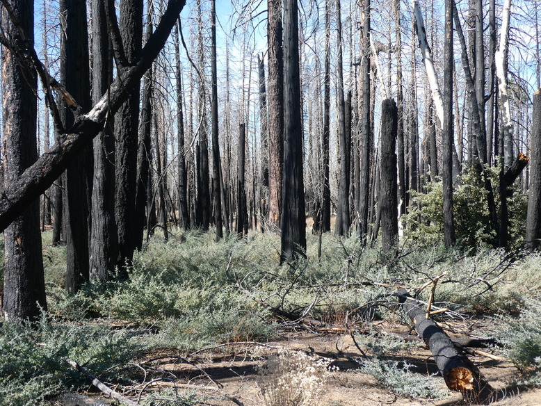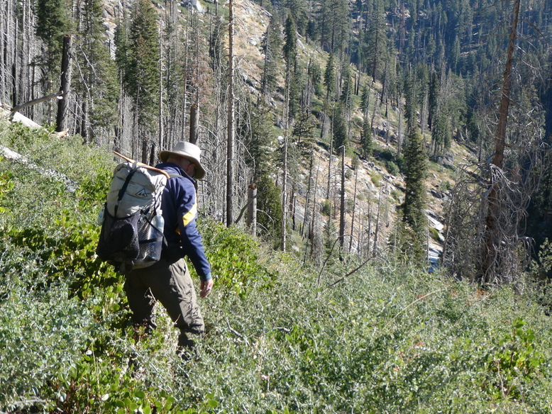One day crossing the forest burned by the Creek Fire where dense thorny undergrowth impeded our progress.
