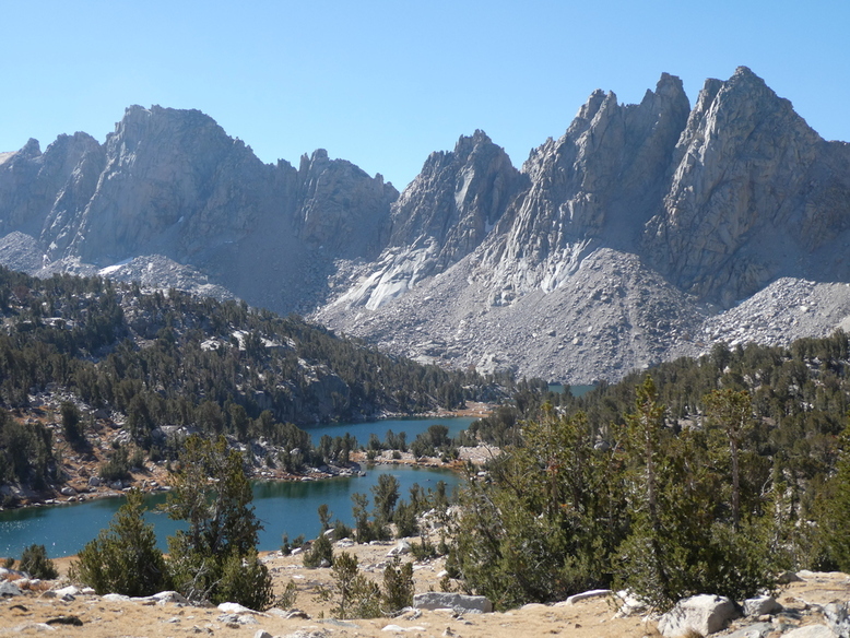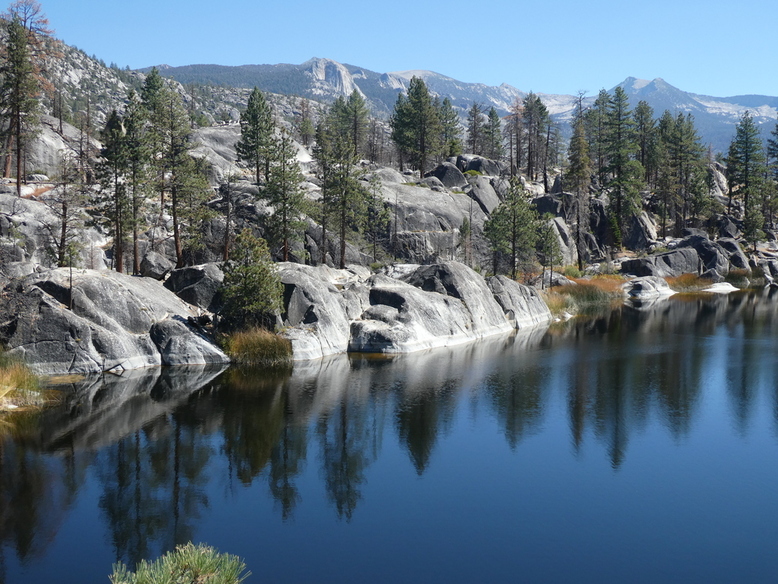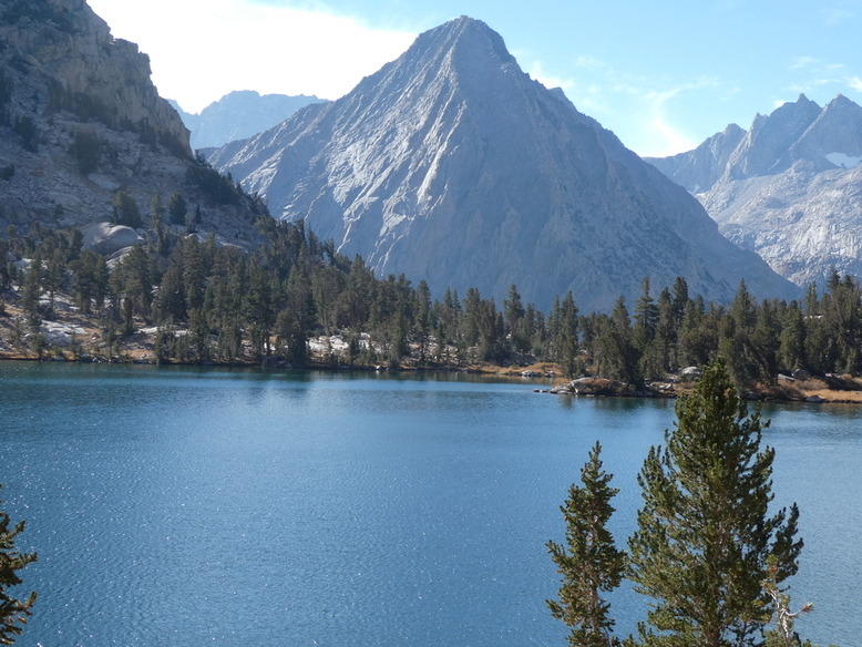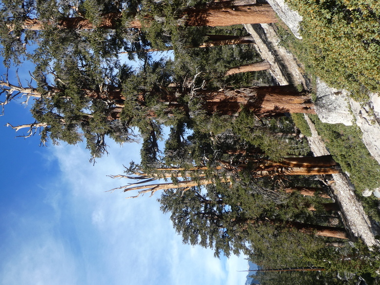 We suffered through a record-breaking heat wave, starting before dawn with headlamps yet still shirtless because it was so warm. This sunrise was colored by smoke from fires in Kings Canyon.