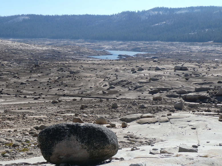 Courtright Reservoir was nearly empty having been drained for a construction project.